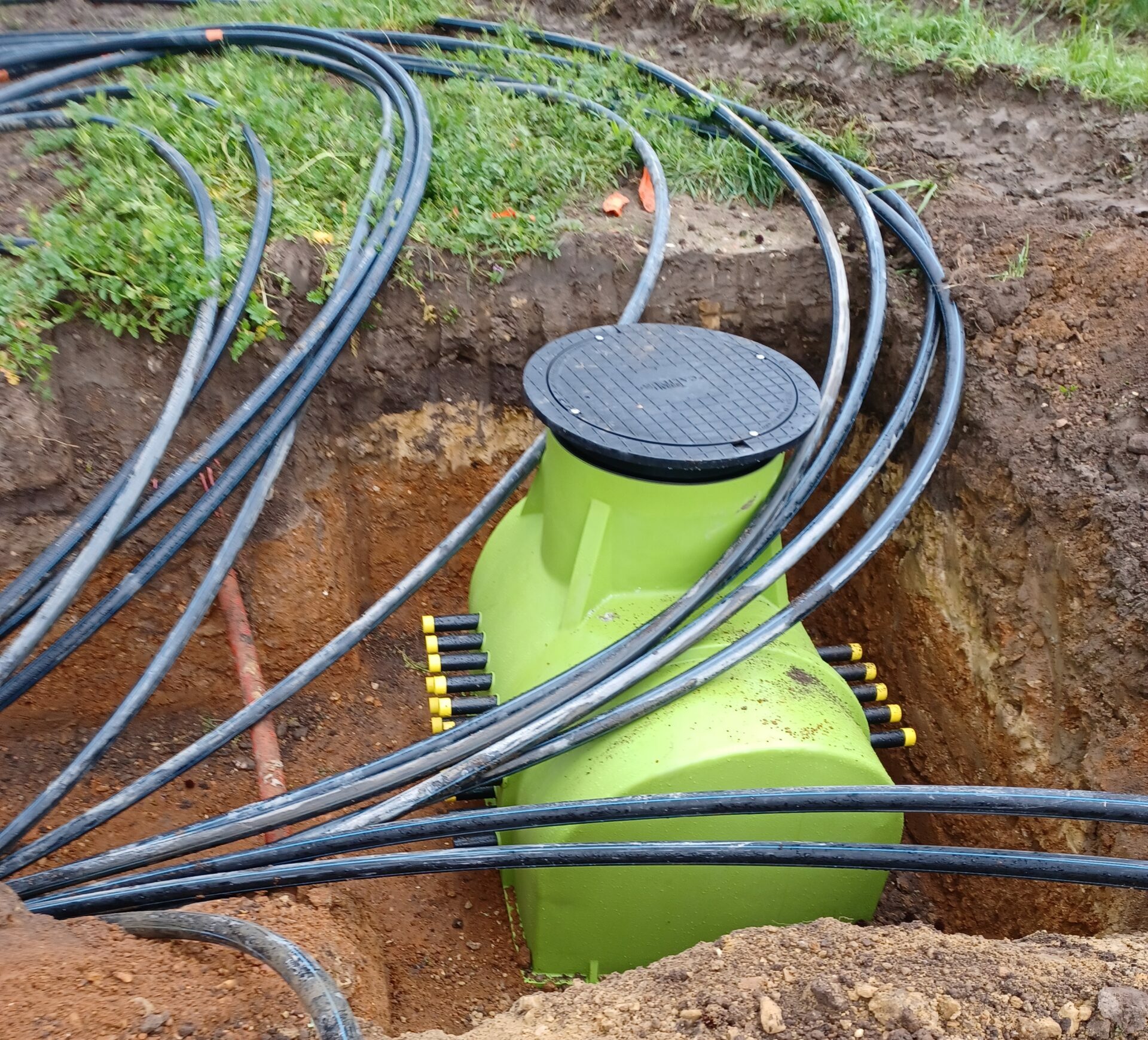 Dans le cadre de ce projet, notre bureau d’études a déployé des solutions innovantes pour optimiser les performances énergétiques tout en maîtrisant les coûts d’investissement. L’installation a été équipée d’un DRY-COOLER, un système permettant de capter l’énergie de l’air extérieur lorsque les conditions climatiques le permettent. Cette approche réduit la sollicitation du champ de sondes géothermiques, préservant ainsi durablement l’énergie du sous-sol tout en garantissant une efficacité optimale.