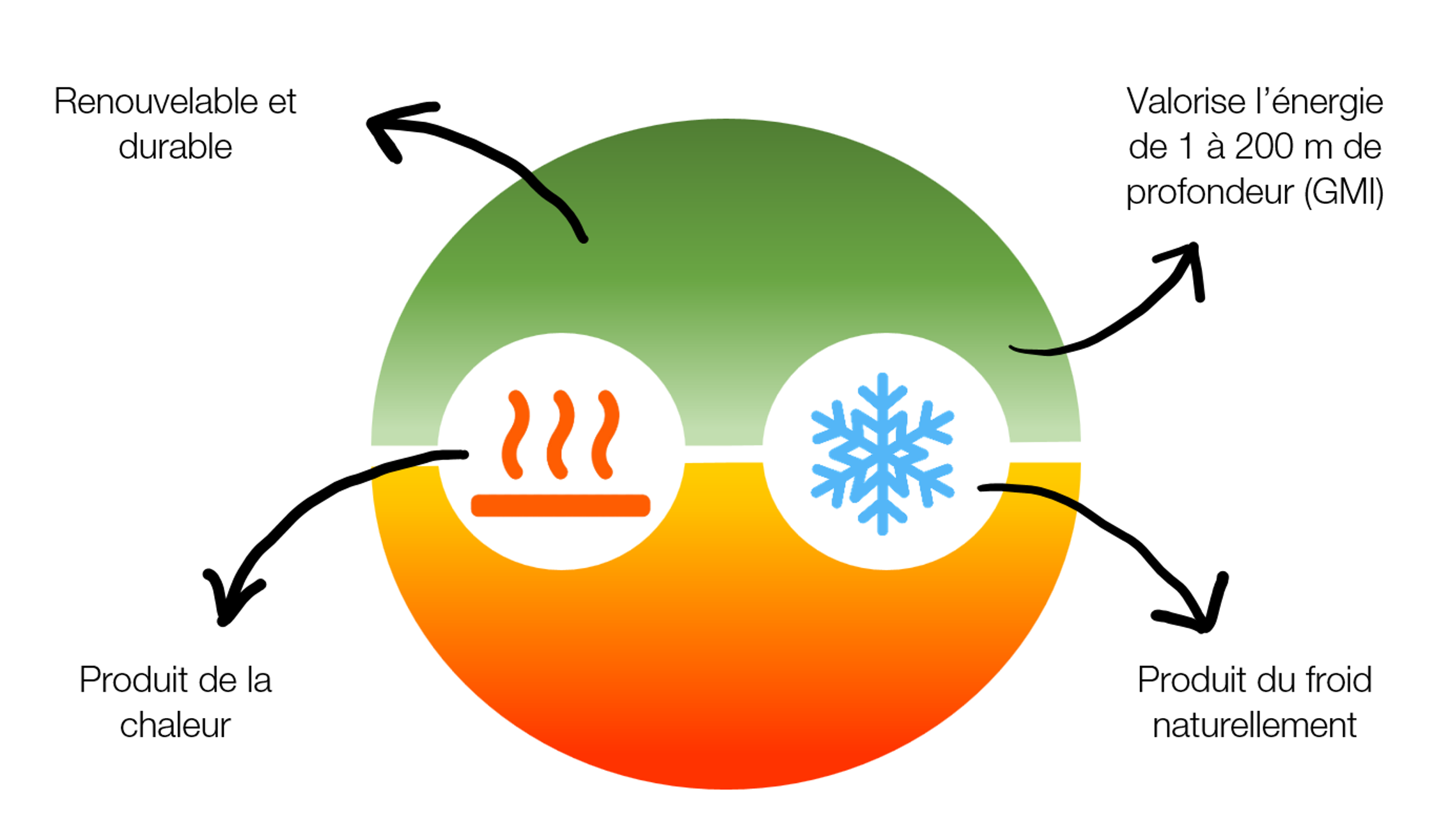 La géothermie, source d’énergie renouvelable, offre une réponse durable aux enjeux énergétiques et environnementaux. En exploitant la chaleur naturelle du sous-sol, elle permet de réduire drastiquement l'empreinte carbone des bâtiments en éliminant presque entièrement les émissions de gaz à effet de serre. La chaleur géothermique est transférée par des sondes souterraines sans combustion, rendant cette solution non seulement propre, mais aussi extrêmement efficace sur le plan énergétique. Elle couvre une part importante des besoins en chauffage, refroidissement, et production d’eau chaude, générant ainsi des économies importantes et une stabilité des coûts énergétiques.